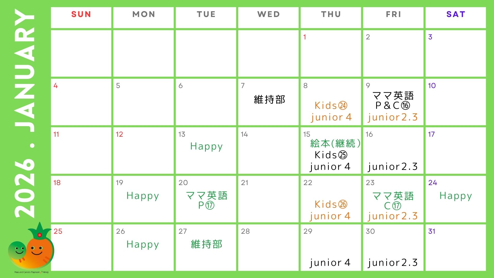 兵庫県姫路市で0歳赤ちゃんから親子一緒に通える英語教室Peas and Carrots Playroom.ピーキャロ!